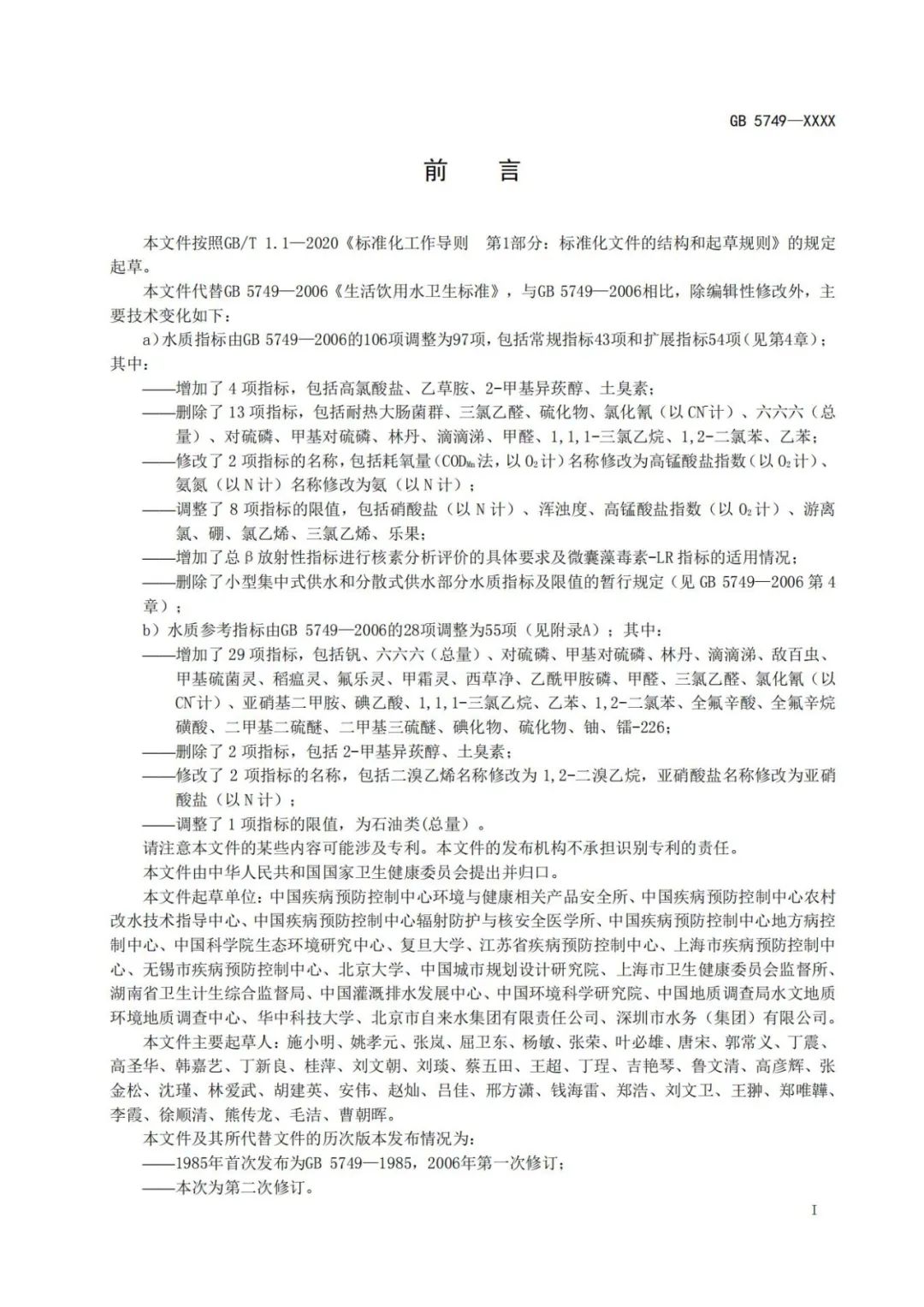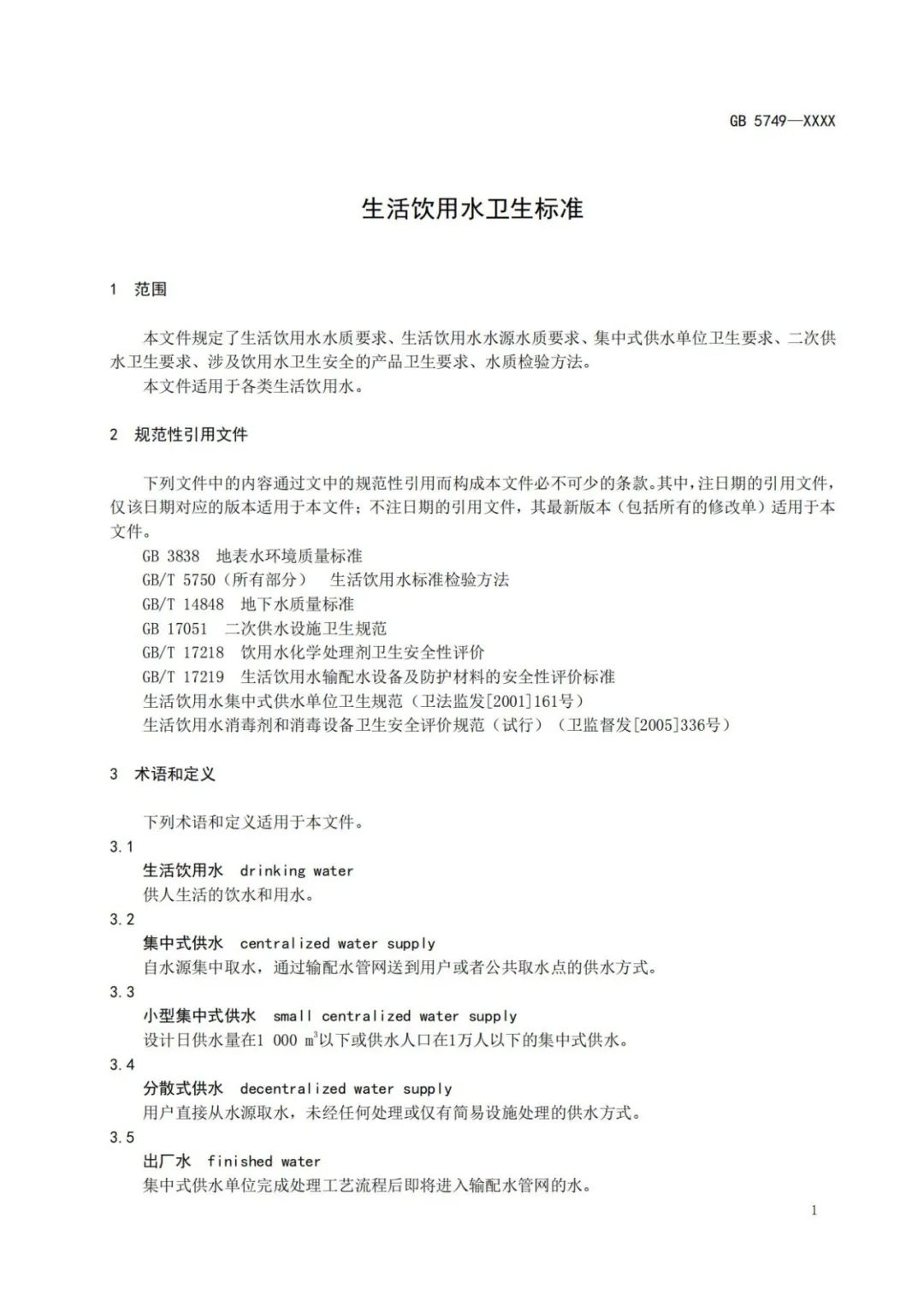 《生活飲用水衛生標準》(GB5749-2022)正式發布!